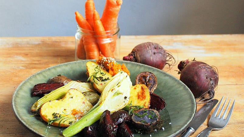 Les légumes grillés accompagnés de houmous de carottes sont l’assurance d’un repas de midi frais et délicieux. Quant aux restes, ils constituent une excellente base pour cuisiner une sauce pour des pâtes.