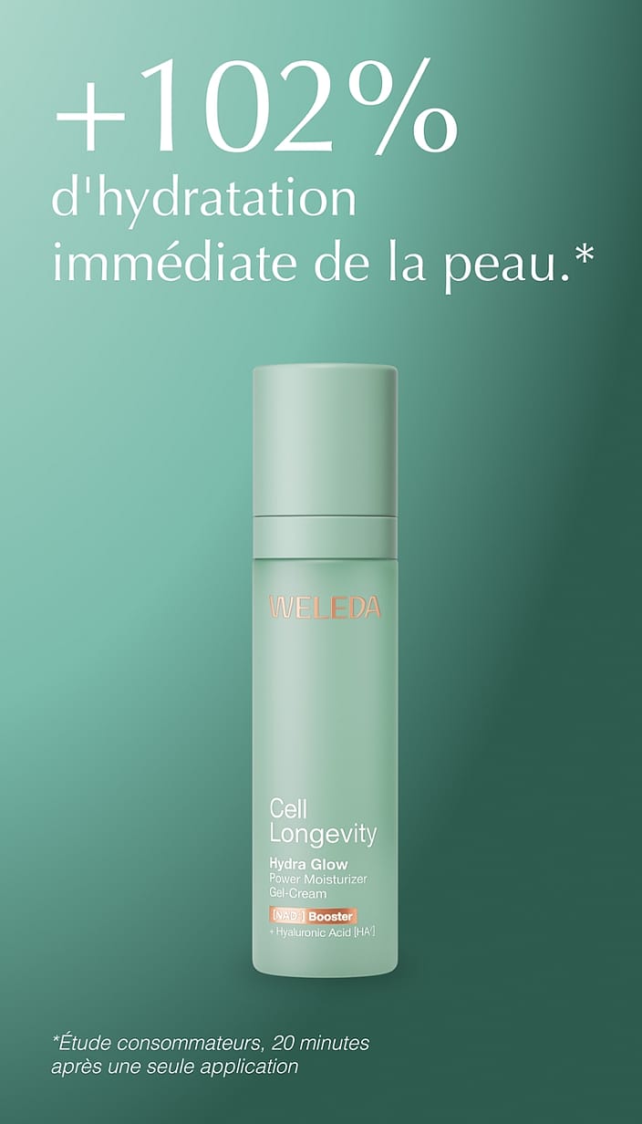 L‘hydra Glow Gel-Crème Hydratant de Weleda redéfinit le soin de la peau : au cœur de cette formule exceptionnelle se trouve un booster innovant de [NAD⁺] - un ingrédient actif clé qui active la molécule de longévité propre à la peau, le NAD⁺, soutient la peau au niveau cellulaire et renforce sa capacité de régénération. Complétée par de l'acide hyaluronique sous 7 poids moléculaires différents et parfaitement coordonnés, cette crème hydrate intensément la peau, la rend plus ferme et plus fraîche. Ce gel-crème est idéal pour votre soin quotidien, afin de fournir à votre peau jusqu'à 48 heures d'hydratation et de mettre en valeur sa beauté naturelle. Un produit de soin sur lequel vous pouvez compter, conçu pour faire rayonner votre peau dans sa meilleure forme : 100 % d'ingrédients d'origine naturelle, tolérance cutanée confirmée dermatologiquement et cliniquement.