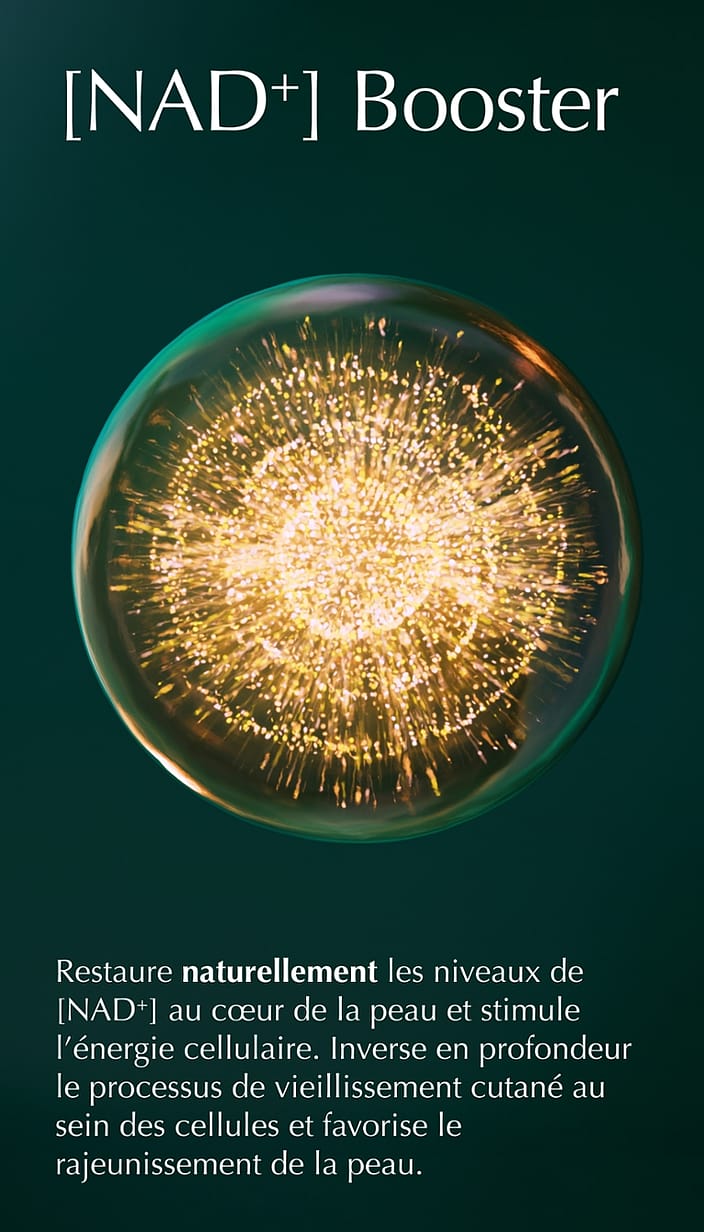 • [NAD⁺] Booster pour Cell Longevity : Restaure naturellement les niveaux de NAD⁺ au cœur de la peau et stimule l'énergie cellulaire. Inverse en profondeur le processus de vieillissement cutané au sein des cellules et favorise le rajeunissement de la peau.