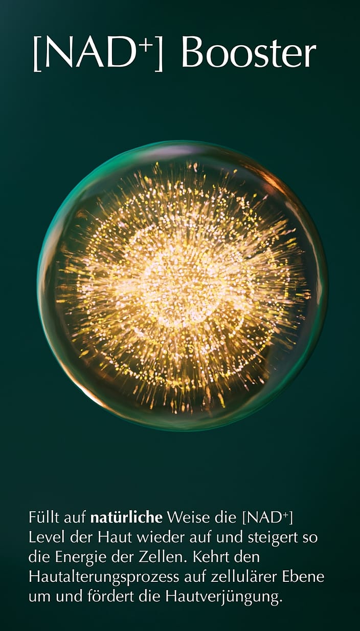 • [NAD⁺] Booster für Cell Longevity: Füllt auf natürliche Weise die NAD⁺-Level der Haut wieder auf und steigert so die Energie der Zellen. Kehrt den Hautalterungsprozess auf zellulärer Ebene um und fördert die Hautverjüngung.