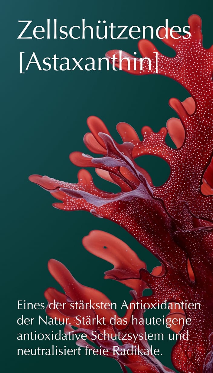 • Mit Astaxanthin, einem der stärksten Antioxidantien der Natur: Stärkt das hauteigene Schutzsystem und neutralisiert freie Radikale.